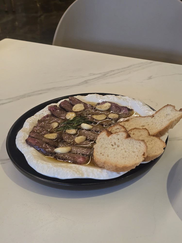 이 와인은 와인 잘알못이여서 설명을 잘못하지만 술맛이 강하지 않아서 함께 주문한 메인 태리 트러플을 사용한 오일 파스타와 + 끓인 버터로 익히는 기버터 스테이크 함께 너무 맛있게 먹었습니다