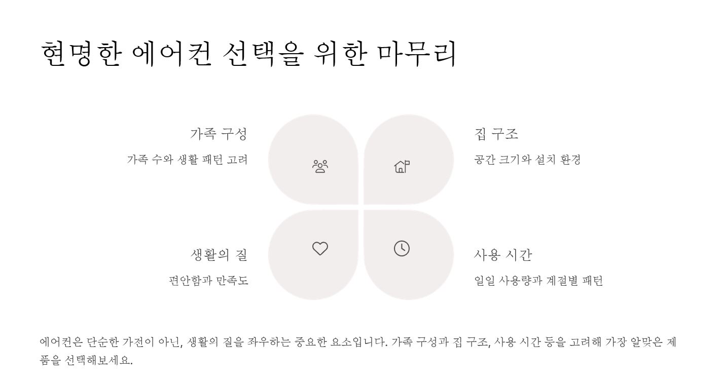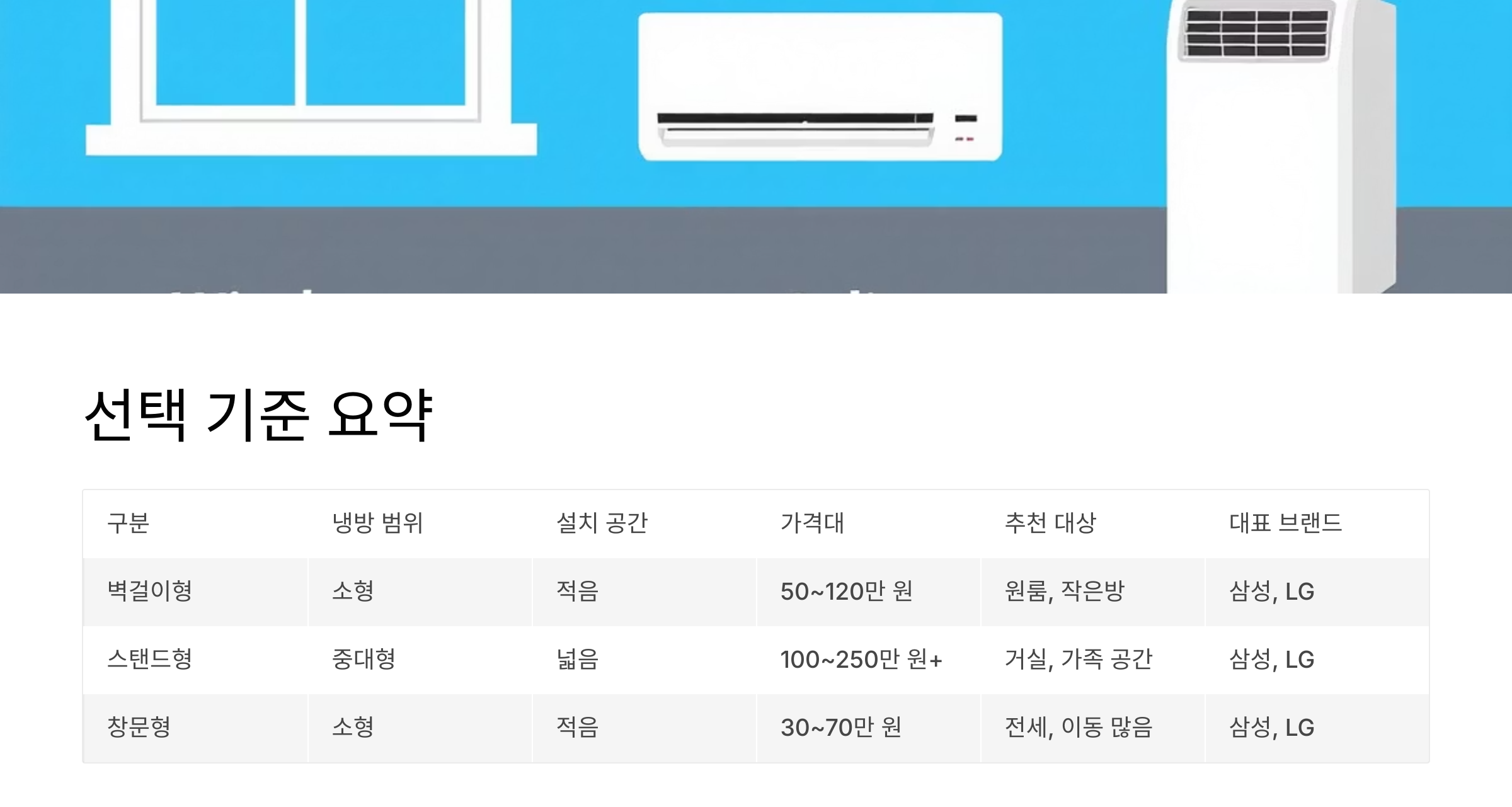 구분냉방 범위설치 공간가격대추천 대상대표 브랜드