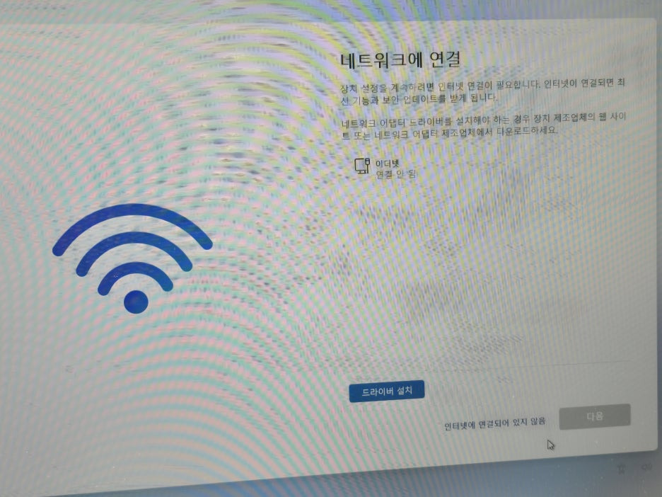 4. 오프라인 설치 옵션 확인 재부팅 후 다시 네트워크 연결 화면이 뜨지만, 이번에는 화면 하단에 새로운 선택지가 나타납니다. 바로 “인터넷에 연결되지 않음” 혹은 “이 장치를 인터넷에 연결하지 않고 설치” 같은 문구가 보일 것입니다. 해당 항목을 클릭하면 로컬 계정을 생성하는 화면으로 넘어갈 수 있습니다.