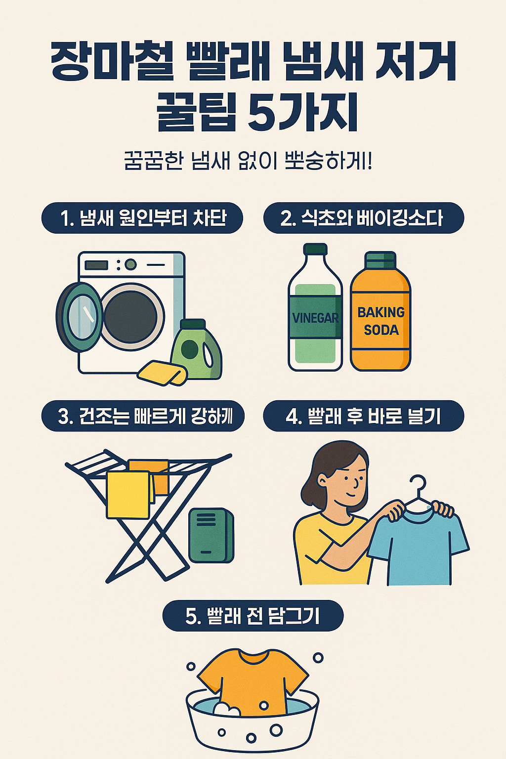 이 글에서는 장마철 빨래 냄새의 원인부터 효과적인 제거 방법까지, 실생활에서 바로 활용할 수 있는 5가지 꿀팁을 소개합니다.