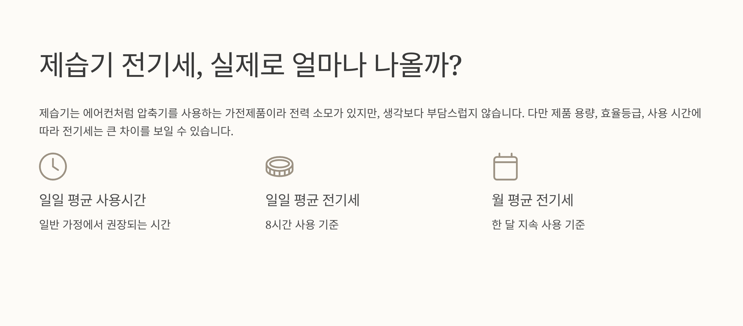 | 제습기 용량 (ℓ/day) | 높음 | 고용량일수록 전력소모↑ |