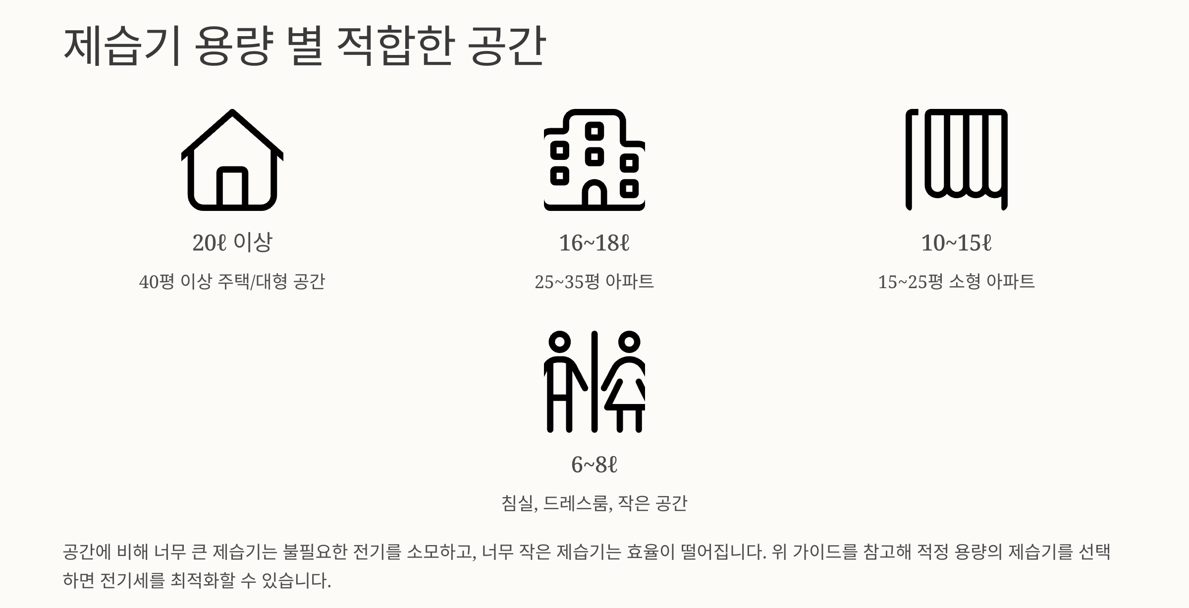 불필요하게 큰 제습기를 쓰면 실제로 쓸데없는 전력만 더 소모될 수 있어요.