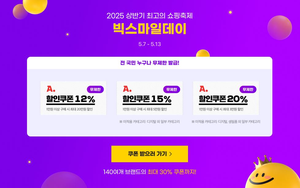 대한민국 대표 쇼핑 축제, 빅스마일데이가 2025년 5월 8일부터 시작됐습니다.