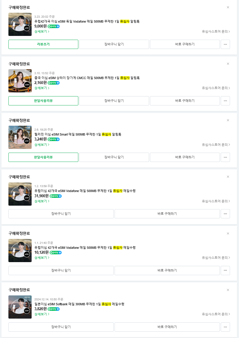 매달 유심사 eSIM을 반복해서 이용하고 있습니다.