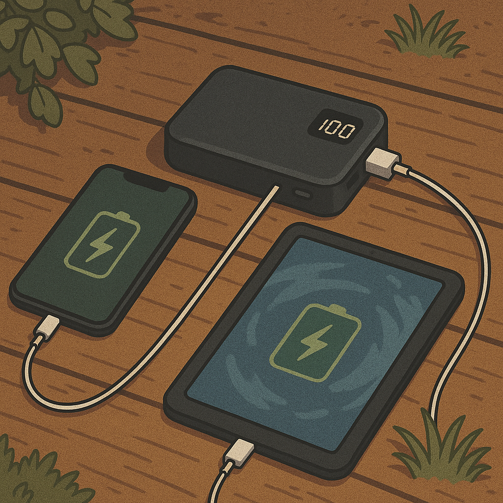 6. 보조 배터리 + 멀티탭 – 전기 걱정 줄이기