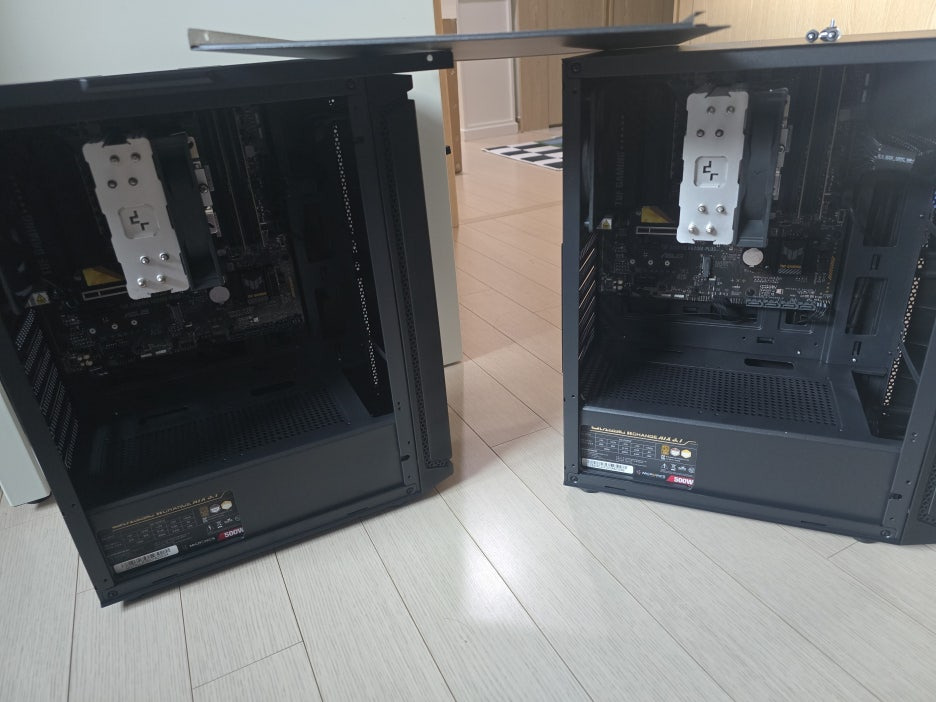 조립은 다나와 측에서 진행된 상태로 받았습니다. 두 대 모두 내부 정리도 깔끔하게 되어 있었고, 부품 결합 상태도 안정적이었습니다. 전반적으로 잘 조립되어 도착했고, 기본적인 외관이나 연결 문제는 없었습니다. 👍