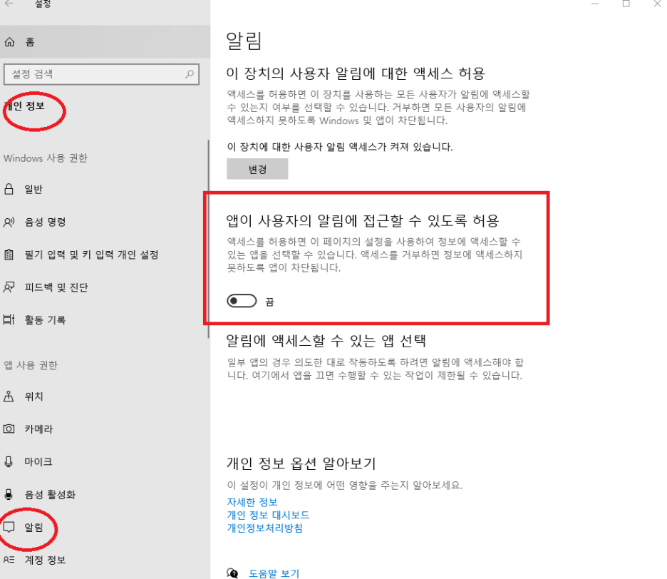 🔧 설정 경로: 설정 > 시스템 > 알림 및 작업