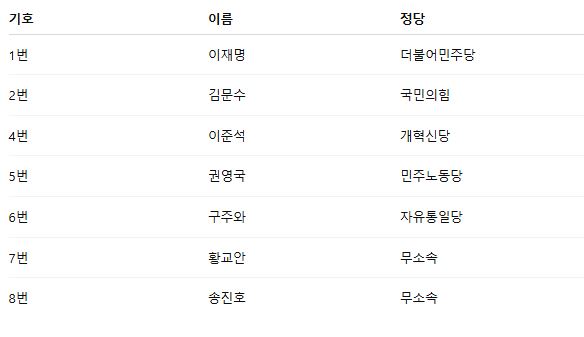 (※ 기호 3번은 공란: 조국혁신당 후보 없음)